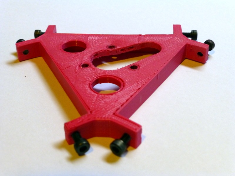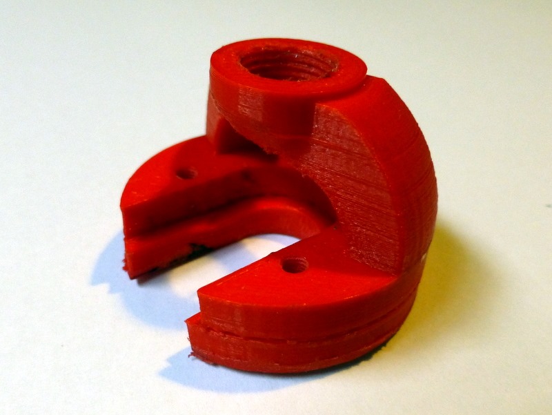 … is that it melts when it gets hot. “Well, duh!”, as my daughters would say. PLA, the thermoplastic used in most 3D printers, is a very practical material. It’s light, strong enough for most purposes, and melts at a reasonable temperature. Which is why I’ve used it for many of the parts in my printer. Most of these parts have no chance of getting hot, so the fact that PLA softens as it heats up is of no concern.